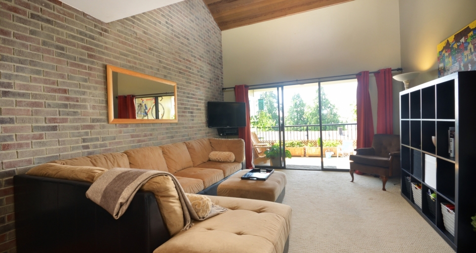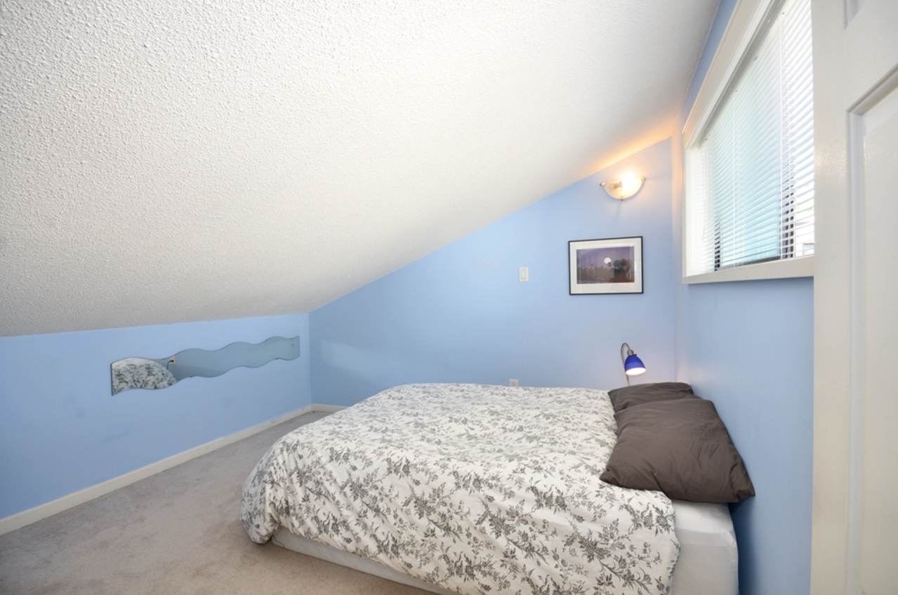 Enjoy unique loft living in this beautifully renovated 2 bedroom, 2 bathroom, south facing penthouse level suite. Features tasteful warm decor, dramatic vaulted ceilings, a fantastic loft space accessible by ladder, large and quiet covered deck with views of the city, harbour, and mountains, cork floors, new insuite laundry, pantry, and more. Recent updates include a new roof(2009), exterior paint(2011), ensuite shower(2012), hot water tank(2011), balcony railing(2010) and mirror(2013). While the strata plan shows this suite as being 920 sq. ft., the enclosed deck spaces and unique loft area make the suite over 1300 sq. ft. in size. Building offers a storage locker, 1 secured parking with additional for rent, party room, and workshop. Conveniently located in the popular Upper Lonsdale Coventry House, close to all amenities including cafes, pizzarias, convenience stores, Queensdale Market, Queens Cross Pub, and transit. Definitely a must see!