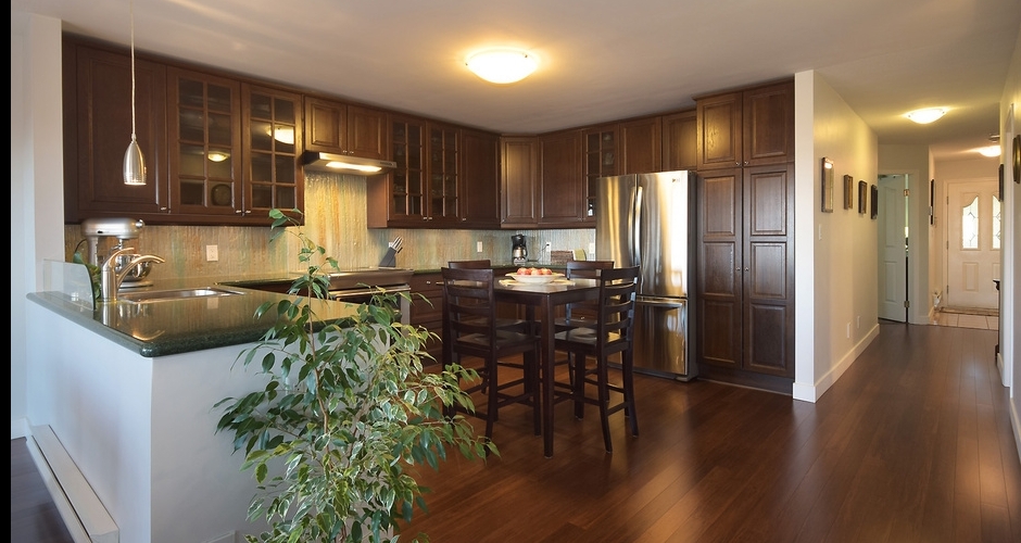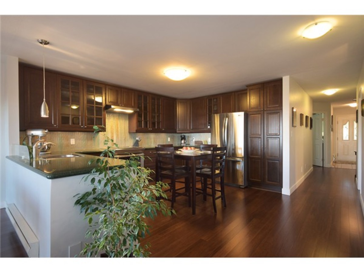 BEAUTIFUL BLUERIDGE CONDO RENOVATION with CITY VIEWS! Completely rebuilt from the studs out, this spacious 1663 sq ft 2 bedroom and den is one level living at its finest with a fantastic, bright, southwest-facing exposure looking out over Vancouver's downtown core. The kitchen was completely opened up in 2010 with new cabinetry, stone counters, and stainless steel appliances. The floorplan flows naturally from one room to the next with open sight lines and new hardwood flooring throughout. Exceptional den with French doors, new gas fireplace, and 2 new bathrooms with heated floors are all great selling features. Building features manicured grounds with outdoor hot tub and patio, and a common social or recreation room.