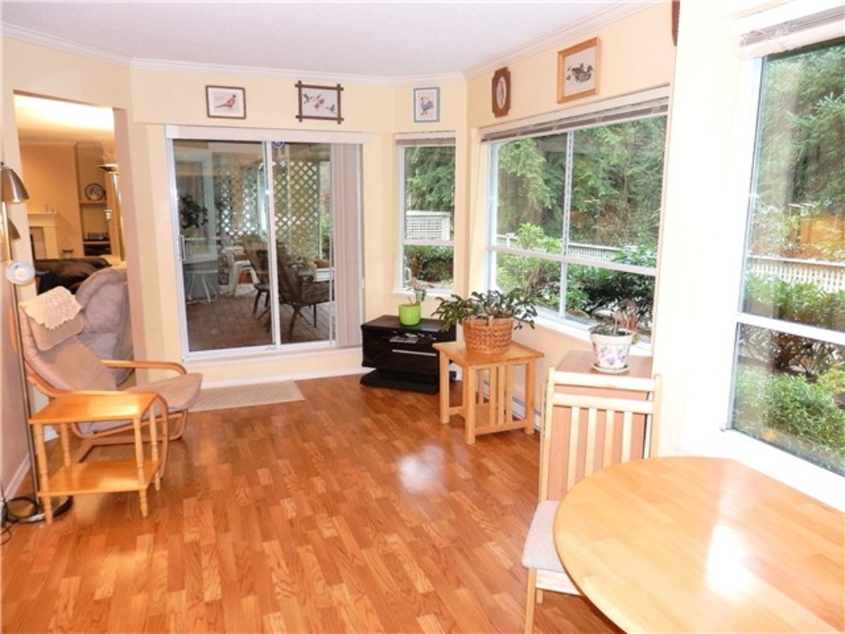 elcome home to Parkgate Manor, an impeccably kept, well managed complex on nature's tranquil doorstep. One level living with a huge garden patio, 2 completely separated bedrooms plus 2 full bathrooms, this well maintained 1330 SF suitelooks out to a scenic green belt with woodland shrubs and trees and has a private locker #9 across the hall, PKG#7. The complex features an indoor exercise pool & exercise room & is super close to the Parkgate shopping centre, library, & community centre plus there are 2 neighbourhood golf courses, miles of walking trails, & skiing at Seymour. 2 cats permitted (no dogs), limited rentals. Measurements from the Strata Plan are approximate, to be verified by the buyer. More photos on our website.