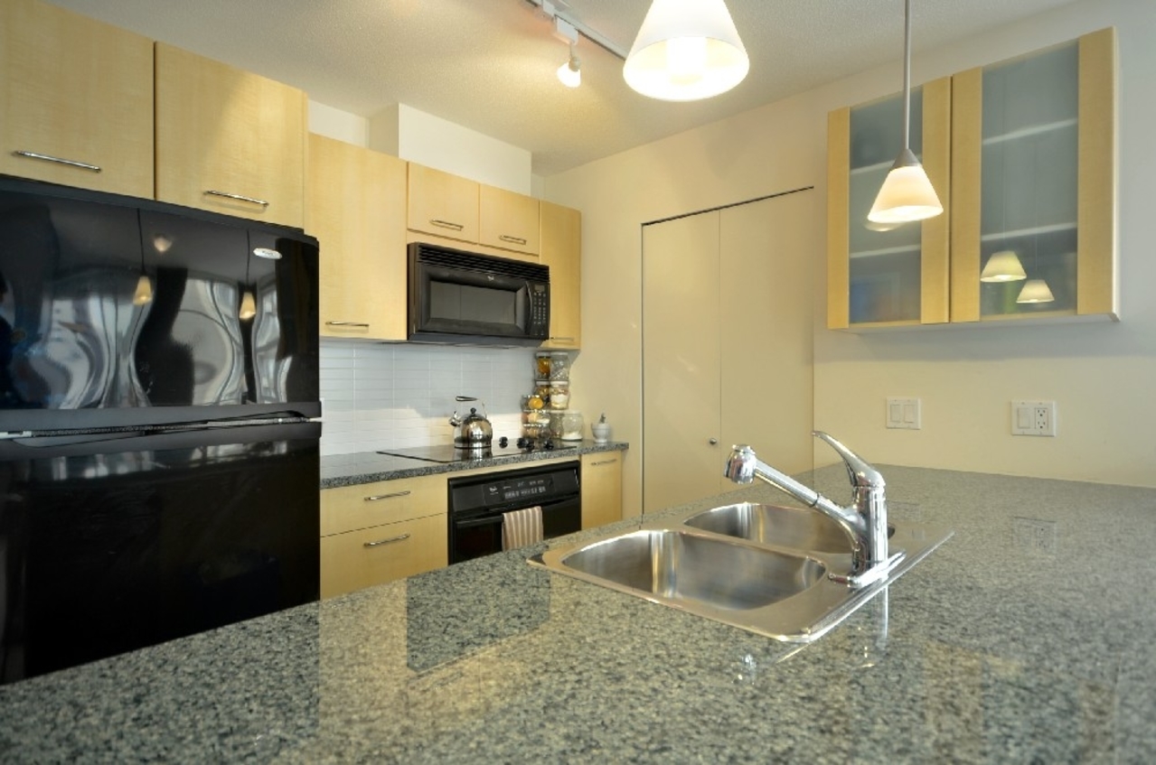 BRAVA, at the pulse of downtown/Yaletown. This corner 1 bed & den unit features open plan with quality finishings. Granite counters, unique pantry off kitchen, expansive floor to ceiling windows, cozy electric fireplace & large balcony,perfect for all season bbq. Excellent building renowned for it's amenities with outdoor lap pool, hot tub, steam room, new gym facilities, meeting rooms, theatre room, kids play areas, guest suites, & across from Emery Barnes off leash park. One parking, one storage, pets allowed, no rental restrictions. Mere steps to the bustle and energy of Yaletown's entertainment, shopping, restaurants, theatres, skytrain, sea wall & more. 24 hr security and concierge. You can have it all in this home.