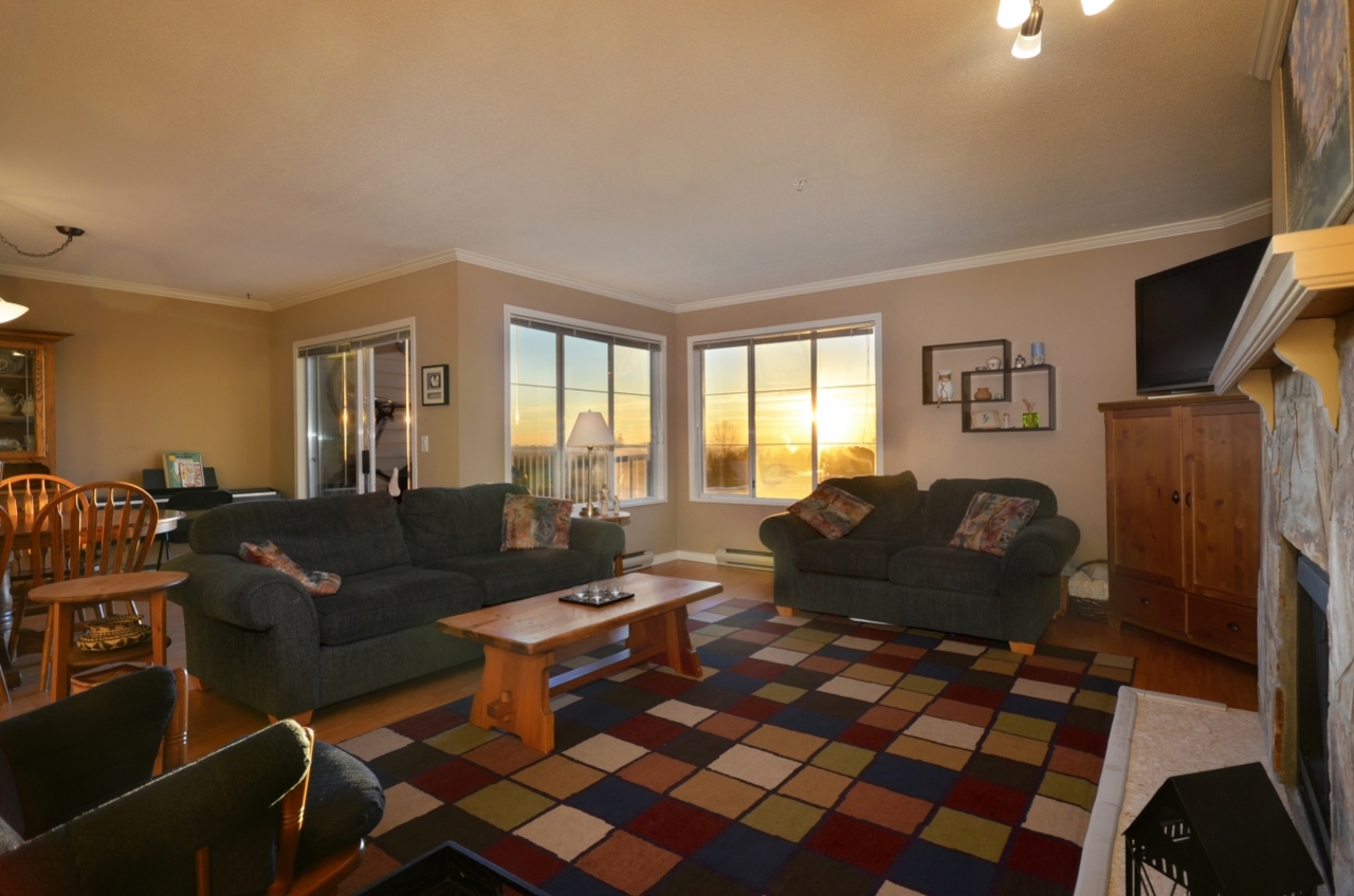 PARKWAY TERRACE: ROCHE POINT'S BEST KEPT SECRET. This penthouse level, 2 bedroom, 2 bathroom end unit condo is a gem! West facing and 1271 square feet, it allows rooms to be generous in size, bright in aspect, and beautiful in outlook.You can enjoy gorgeous views of the well-manicured gardens, downtown Vancouver, and the Gulf Islands. Updated kitchen, bathrooms, and flooring, plus a large laundry room with ample insuite storage, gas fireplace, and a sunny, west facing balcony add to this suite's appeal. One of the quietest and most attractive developments east of the Seymour, this is within close walking distance to shopping at Parkgate Centre, parks, golf courses, churches, schools, library, community center, etc...